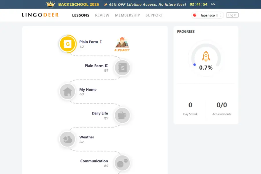LingoDeer is definitely one of the most budget-friendly tools out there for learning Japanese. Their subscription model usually costs somewhere between $13.33 USD and $14.99 USD per month. They offer some great discounts if you commit to a yearly or lifetime membership (for instance, the lifetime is often discounted to $199.99 USD from $499.99 USD). This makes it accessible to almost anyone and is particularly attractive for students who aren't quite ready to dive into a more intensive course.