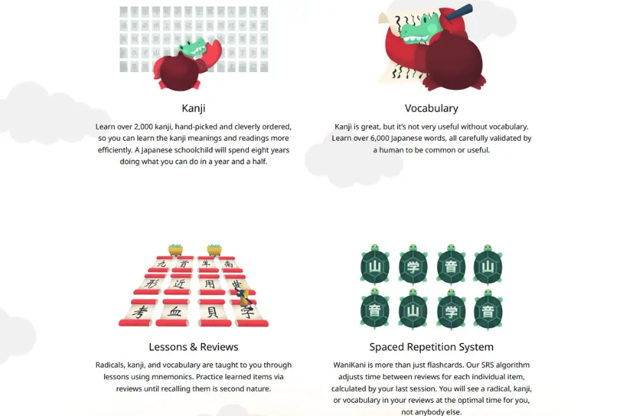WaniKani's key strength is its fantastic spaced repetition system. It gamifies kanji learning—you unlock new levels as you progress, which is great for keeping your motivation up and making it feel less like a chore. They even have a "vacation mode," which is a thoughtful touch, letting you pause studies so you don't get slammed with reviews when you return from a break. But, outside of kanji memory, there's little else: no cultural insights, no official certificates, and no opportunity for real-world communication practice.