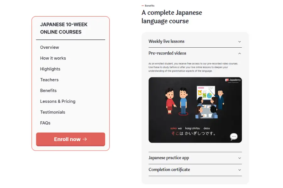 - Free access to Japanese video courses and practice flashcards.