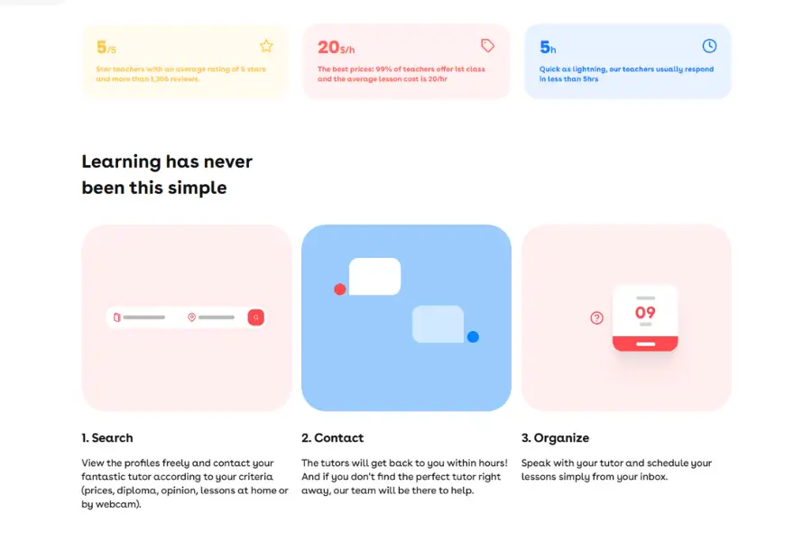 Since Superprof is an open platform, anyone can apply to teach. The result is that the effectiveness, teaching credentials, and experience of the tutors vary wildly. Though student reviews are available, there isn't a single, set standard to guarantee all tutors meet a certain quality threshold. You might find an amazing, highly skilled tutor, but you could just as easily end up with a less seasoned teacher whose lessons aren't well-organized. Finding the perfect match may take time, multiple trial lessons, and a lot of patience.